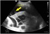 Paciente de 52 años con antecedente personal de síndrome de inmunodeficiencia adquirida, que ingresa en nuestra unidad por neumonía adquirida en la comunidad por Streptococcus pneumoniae. En la radiografía de tórax se objetiva infiltrado basal derecho y se realiza tomografía computarizada de tórax con hallazgos de neumonía necrotizante con probable absceso pulmonar incipiente. Presenta mala evolución, con hipoxemia refractaria a ciclos de prono, realizándose ecografía pulmonar. Se observa derrame pleural con trayectos fibrosos hiperecogénicos o signo del plancton en su interior (fig. 1, flecha 1), infiltrado basal derecho con hiperecogenicidad del parénquima por hepatización del mismo con broncograma aéreo, también interno (fig. 2, flecha 2), así como zonas trabeculadas hipoecogénicas bien delimitadas, compatible con neumonía necrotizante y absceso pulmonar (fig. 2, flecha 3).