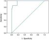 In the ROC curve analysis, in order to establish the velocity increment that best identified the patients at risk of DCI, we included 88 TCD explorations corresponding to those patients with at least two ultrasound registries in the first 72h of evolution and with no ulterior development of hyperemia. We found that the MV increments in the MCA could differentiate those patients at risk of suffering DCI (area under the curve (AUC): 0.973, p<0.001) (Fig. 1). On analyzing the coordinates, we found the best cutoff value for the MV increment in the MCA during the first three days to be 21cm/s, with a sensitivity of 85.7%, a specificity of 96.6%, a positive predictive value of 85.7%, and a negative predictive value of 97.2%.