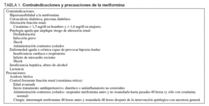 TABLA 1. Contraindicaciones y precauciones de la metformina