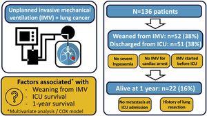 • More than one-third of patients with lung cancer were successfully weaned off unplanned invasive mechanical ventilation and discharged from ICU.
