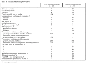 Grupo angioplastia primaria: realización de procedimiento percutáneo invasivo estándar. En este grupo el empleo de inhibidores IIb-IIIa era decidido por el investigador.