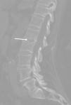 Como origen de todo el cuadro infeccioso, se barajó la posibilidad de espondilodiscitis fúngica dada la sintomatología previa de dolor lumbar que refirió y los factores de riesgo que presentaba la paciente. Las pruebas realizadas en este sentido no fueron concluyentes. Durante su ingreso en nuestra unidad se realizó TC lumbar que mostró alteración en el disco L1-L2 con erosiones en los platillos vertebrales y esclerosis en los cuerpos vertebrales indicativa de espondilodiscitis (fig. 2). Al no poder completar estudio con resonancia magnética, ya que lo contraindicaba el recambio valvular reciente, se decidió realizar gammagrafía con galio 67 que mostró la presencia de un discreto depósito de galio en la columna lumbar (L1-L3), correspondiente con la presencia de un foco infeccioso o inflamatorio (degenerativo). Ante los hallazgos de hemocultivos seriados negativos y como se iba a mantener el tratamiento antifúngico de forma crónica, se decidió actitud conservadora y seguimiento4–7. Varios meses después del alta hospitalaria se realizó una TC lumbar de control donde básicamente se observaban los mismos cambios que en el previo.