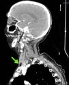 This is the case of a hospitalized patient whose jugular central catheter is removed while sitting on a couch prior to his hospitalization. A few seconds later, the patient develops dissociative disorder, hypokinesia, and acute respiratory failure. A stroke is suspected. The simple cranial CT scan and coronary computed tomography angiography (CCTA) performed reveal no signs of acute ischemia or major cerebral vessel occlusion, but the presence of numerous aerial bubbles at right jugular vein, cerebral cavernous sinuses, extra-axial intracranial sinuses, and a few intra-medulla oblongata bubbles at clivus level (Figs. 1–3). All signs of venous air embolism. This is a rare complication associated with central venous catheters. However, proper management of these is important regarding insertion, maintenance, and removal both at the intensive care unit and hospital ward settings to avoid complications.