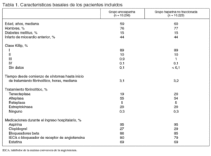 Objetivo: comparar la eficacia y seguridad de la enoxaparina y de la heparina no fraccionada en el tratamiento de los pacientes con infarto de miocardio con elevación del ST a los que se ha realizado fibrinólisis.