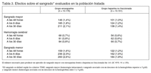 Resultados (tablas 2 y 3): el tratamiento con enoxaparina duró una mediana de 7 días (rango intercuartil: 4,5 a 7,5 días) y con heparina no fraccionada duró una mediana de 2 días (rango intercuartil: 2,0 a 2,2 días).