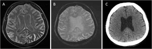 Más datosA 65-year-old female monitored in the ICU for severe hypertension (225/120mmHg) developed sulcal hyperintensities on FLAIR on day one after contrast-enhanced MRI, raising suspicion of subarachnoid hemorrhage (SAH) (Fig. 1A). However, SWI and CT showed no hemorrhage (Fig. 1B and C). The findings were attributed to gadolinium leakage, confirmed by normalization on follow-up imaging. Recognizing this prevents misdiagnosis and unnecessary interventions. This case highlights that conditions leading to blood-brain barrier disruption may allow gadolinium to leak into the subarachnoid space, which may mimic SAH on FLAIR sequences obtained after contrast-enhanced MRI. In such cases, the use of additional imaging modalities, such as CT and SWI, is crucial to avoid misdiagnosis and unnecessary interventions.
