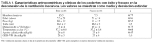 TABLA 2. Variables clínicas medidas con ventilación mecánica y durante la prueba de respiración espontánea. Los valores se muestran como media y desviación estándar