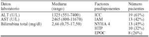Métodos: Estudio descriptivo retrospectivo de pacientes que presentaron HI en el periodo perioperatorio de CCV, entre mayo de 1998 y septiembre de 2001. El diagnóstico se estableció por: a) Elevación transitoria de aspartato aminotransferasa (AST) y alanino aminotransferasa (ALT) más de 10 veces el control; b) Normalización de los niveles enzimáticos en los días siguientes, y c) Exclusión de otras causas de lesión hepática aguda.