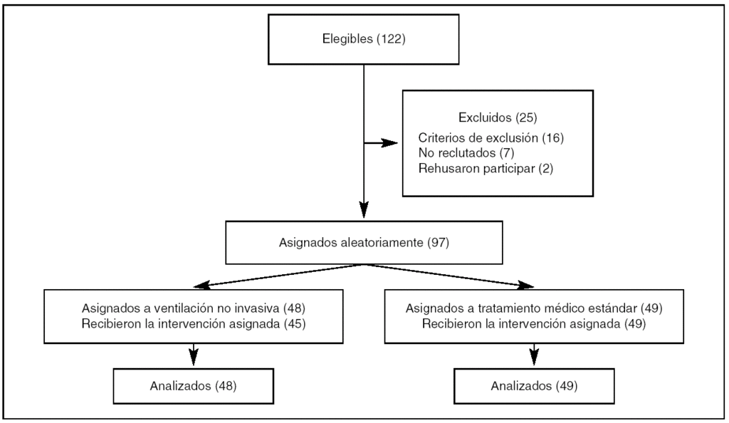 Artículo: Nava S, Gregoretti C, Farfulla F, Squadrone E, Grassi M, Carlucci A, et al. Noninvasive ventilation to prevent respiratory failure after extubation in high-risk patients. Crit Care Med. 2005;33:2465-70.