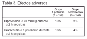 En un análisis por subgrupos de los pacientes con hipotermia espontánea, se observa que los pacientes no mantenidos en hipotermia tienen peor pronóstico que los mantenidos en hipotermia. Estos hallazgos sugieren que los pacientes previamente hipotérmicos deben ser mantenidos en esa situación y no deben ser calentados, aunque sería necesaria una investigación específica para verificar esa hipótesis.