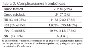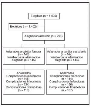 Hasta el momento, ningún estudio con asignación aleatoria había comparado la incidencia de complicaciones trombóticas e infecciosas asociadas a la cateterización femoral o de la subclavia.