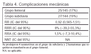 Objetivo: comparar las complicaciones mecánicas, trombóticas e infecciosas asociadas a la cateterización de la vena femoral y de la vena subclavia en pacientes ingresados en UCI.