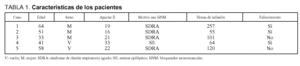Se incluyó a 5 pacientes (tres mujeres), con edades de 49 (DE, 11) años y peso aproximado de 65 ± 10 kg. Los pacientes fueron ingresados en la UCI en 2 casos por insuficiencia respiratoria aguda, y en un caso por intoxicación farmacológica (por antidepresivos, antipsicóticos y benzodiacepinas), shock séptico y tras parada cardiorrespiratoria reanimada. El APACHE II al ingreso fue de 22 (DE, 6). Los pacientes necesitaron ventilación mecánica y sedación profunda, con midazolam (rango de 16 a 34 mg/h) y fentanilo, por SDRA (4 casos) y estatus mioclónico (un caso). Los 4 pacientes con SDRA fueron ventilados con VC < 6 ml/kg, PEEP 12-20 cmH2O e hipercapnia permisiva. Dos de ellos necesitaron relación invertida. Un paciente presentaba criterios de fallo multiorgánico (FMO). Se decidió bloqueo neuromuscular con rocuronio en perfusión continua para conseguir la adaptación a la ventilación mecánica en 4 casos, y para la abolición de las mioclonías en un caso (tabla 1). El tiempo total de infusión del rocuronio fue de 123 (DE, 70) h, lo que supuso el 45 (DE, 23)% de la duración total de la ventilación mecánica. En todos los casos se consiguió la adaptación a la ventilación mecánica con la presencia de las 4 respuestas a la estimulación TOF con una relación T4/T1 < 30%. La dosis necesaria para conseguir este nivel de bloqueo neuromuscular fue de 28 (DE, 20) mg/h, con un rango de 10-80 mg/h. Hubo 7 (DE, 3) cambios de dosificación por paciente. El paciente que presentaba criterios de FMO (con afección de la función hepática y renal) fue el que necesitó menos dosificación del fármaco. No se precisó aumentar la dosis durante el tiempo de infusión. Tres pacientes fallecieron. En los dos supervivientes, la recuperación del bloqueo (DBS 1) fue de 55 (DE, 5) min, y en su seguimiento no se observaron complicaciones neuromusculares relevantes.