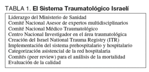 En este sentido, los autores1 describen cómo se creó a mediados de los años 90 el Sistema Traumatológico Israelí (STI), poniendo de manifiesto la capacidad de modificar radicalmente, a escala nacional, una forma de concebir la planificación traumatológica. Es decir, se consiguió cambiar un sistema traumatológico que ellos mismos califican como rudimentario, por otro totalmente estructurado, planificado y coordinado. En la práctica, tal cambio se llevó a cabo mediante el liderazgo de las autoridades sanitarias, asesorado por un Comité Nacional de expertos multidisciplinario, que diseñó los fundamentos y guías de funcionamiento del nuevo STI. De esta forma se crearon diferentes centros y comités (tabla 1) que se ocuparon de la legislación, investigación, organización, enseñanza, prevención y asistencia traumatológica.