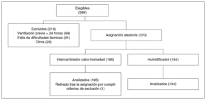 Se produjeron 5 episodios de oclusión del tubo traqueal en el grupo de humidificador y 1 en el de intercambiador de calor-humedad.