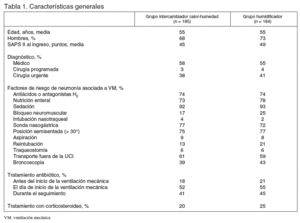 Objetivo: evaluar el impacto de dos sistemas de humidificación en la incidencia de la neumonía asociada a la ventilación mecánica en una población no seleccionada de enfermos críticos.
