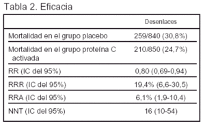 Antecedentes: la proteína C activada es una proteína que favorece la fibrinólisis e inhibe la trombosis y la inflamación. Sus valores están disminuidos en la mayoría de los pacientes con sepsis. Se ha descrito que la reducción de las cifras de proteína C activada en los pacientes con sepsis se asocia con un incremento de la mortalidad. En modelos experimentales de sepsis grave se ha mostrado la reducción de la mortalidad tras la administración de proteína C activada recombinante.