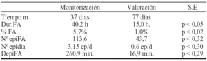 Conclusiones: Se objetivo una disminución de la duración de la FA, del porcentaje de tiempo de FA, del Nº de episodios así como de su duración. Presento S.E la disminución del porcentaje de tiempo en FA de 7,0% a 1,1%.