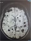 Más datosMujer de 23 años que sufre cuadro de fallo hepático agudo grave con estudio etiológico no concluyente, y que recibe tratamiento corticoideo durante un mes por sospecha autoinmune. Sufre deterioro neurológico y se realiza escáner de cráneo con múltiples lesiones ocupantes de espacio que motivan la realización de un escáner total body donde se objetivan microabscesos en órganos abdominales y resonancia de cráneo con incontables áreas focales de alteración de la señal supra e infratentoriales con componente hemorrágico central y áreas de restricción de la difusión en la periferia que tras administración de contraste muestran realce periférico fino, todo ello compatible con encefalitis séptico-embólica. Los hemocultivos y la ecografía transesofágica descartaron la sospecha de endocarditis. No fue posible la punción lumbar por trombocitopenia. Finalmente se realiza determinación de A. fumigatus por PCR en lavado broncoalveolar que fue positiva. Recibe tratamiento antifúngico con mala evolución y finalmente desarrolla muerte encefálica (fig. 1).