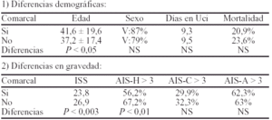 073 DIFERENCIAS EN EL PERFIL EPIDEMIOLÓGICO Y LESIONAL DE LOS POLITRAUMATIZADOS GRAVES CON O SIN PASO PREVIO POR UN HOSPITAL COMARCAL