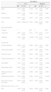 | Diabetes mellitus | 2,629 | 1,515; 4,561 | 0,001 | 1,978 | 1,235; 3,167 | 0,005 |