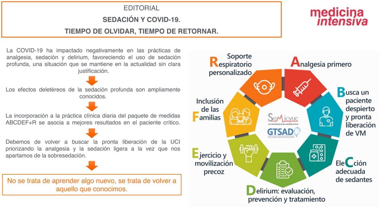 Los intensivistas debemos de volver a buscar la pronta liberación de la UCI haciendo uso de estrategias que prioricen la analgesia y la sedación ligera, prevengan, identifiquen y traten el delirium, a la vez que intentan mantener al paciente despierto, tranquilo y colaborador alejándose de la sobresedación. Solo de esta manera conseguiremos volver a los estándares previos a la COVID-19 y mejoraremos las perspectivas futuras de nuestros enfermos. No se trata de aprender algo nuevo, se trata de volver a aquello que conocimos.