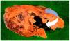 Figura 1. Corte transversal de lóbulo tiroideo izquierdo, en el que se aprecia la cavidad que correspondería al absceso y sus bordes de aspecto esfacelado.
