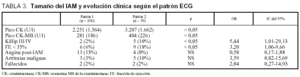 Diversos autores han estudiado las alteraciones del complejo QRS en relación con el pronóstico de los pacientes, apreciando una correlación de la distorsión del complejo QRS (patrón 2) en el ECG de ingreso con un mayor pico de CPK, más disfunción ventricular y mayor mortalidad9,14,24-26.