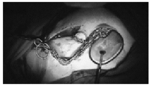 Figura 2. Fotografía tomada en el momento de recolocar el marcapasos en la que se observa la "trenza" que han formado los cables por rotar el generador en su eje vertical.