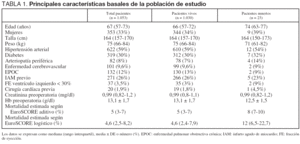 Veintidós pacientes fallecieron en el hospital y uno en su domicilio. La mortalidad observada fue del 2,2% (intervalo de confianza [IC] del 95%: 1,2 - 3,1). La edad media de los pacientes que fallecieron fue de 69 ± 11,8 años, estadísticamente superior a la de los supervivientes con 64 ± 11,4 años (p = 0,02). Los pacientes mayores de 70 años (30% del total) presentaron una mortalidad del 4,2%, los pacientes entre 60 y 70 años del 1,2% y 1,1% los menores de 60 años (p = 0,006). Las causas de muerte fueron: cardiovasculares (8 pacientes ), mediastinitis (2 pacientes), sepsis (4 pacientes), isquemia intestinal (3 pacientes), accidente cerebral (2 pacientes) y otras (4 pacientes).