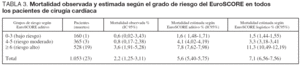 En nuestro hospital la utilización de las escalas aditiva y logística del modelo EuroSCORE sobreestimó la mortalidad de los pacientes operados de cirugía cardíaca con circulación extracorpórea, tanto en los pacientes de alto y bajo riesgo como en los distintos procedimientos quirúrgicos.