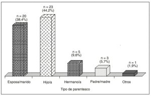 Respecto al grado de parentesco de las personas encuestadas, el 44,2% de los que contestaron eran hijos de los pacientes y el 38,4% eran los cónyuges (fig. 1).