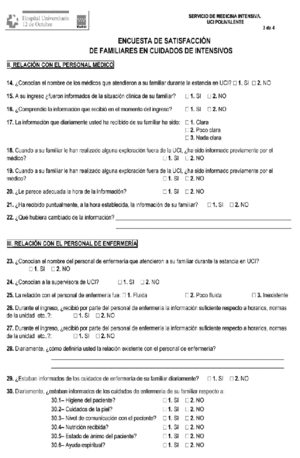 Se diseñó y validó una encuesta con 40 preguntas que se distribuyó a los familiares de primer grado de los pacientes ingresados en la UCI, a los 15 días de alta (anexo II).