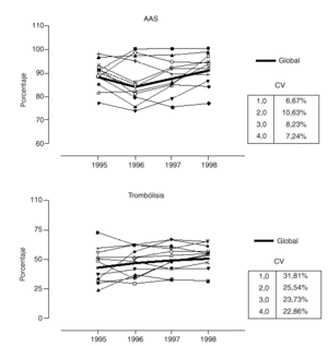 Evolución temporal del coeficiente de variabilidad intercentros en el tratamiento farmacológico del infarto agudo de miocardio