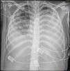 Mujer de 19 años, con antecedente de miopatía de Steinert, intubada por distrés respiratorio grave tras laparotomía exploradora por seudooclusión intestinal. En aspirado traqueal, E.coli sin mecanismos de resistencia. Muy mala mecánica pulmonar (compliance inferior a 2ml/cmH2O) y sin respuesta a maniobra de prono, se canula ECMO veno-venoso y, ante las altas presiones en la vía aérea con 4ml/kg de peso ideal, se cambia ventilación por ventilación con liberación de presión en la vía aérea (APRV): presión alta 15cmH2O; tiempo alto 6s; tiempo bajo 0,3s. Inicialmente 10ml de volumen espirado. La evolución radiográfica se muestra en las imágenes (fig. 1: día0; fig. 2: día2; fig. 3: día5). Este caso es un ejemplo de cómo la ventilación por APRV mientras aseguramos el intercambio gaseoso con el ECMO puede ser útil en el manejo de pacientes con distrés respiratorio refractario.