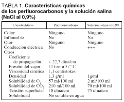 Varios compuestos están en desarrollo, y se tienen datos experimentales de los siguientes: perfluorocarbono (Liqui Vent®, Alliance Pharmaceutical Corp. San Diego, CA, EE.UU.); perfluorodecalina (Fluka, Buchs, Suiza) y perfluorocarbono (RM 101, Mercantile Development, Inc., Toronto, Canadá). Las diferencias químicas entre estos compuestos dependen de su viscocidad. Las características físicoquímicas del perfluorocarbono lo hacen superior a la perfluorodecalina, en cuanto a su mejor eliminación, intercambio gaseoso y distensibilidad. Perfluorocarbono (Liqui Vent®) es el único que cuenta con información humana y animal, es bioquímicamente inerte, tiene dos veces la densidad del agua, baja tensión superficial, alto coeficiente de propagación, baja presión del vapor, 20 veces la solubilidad para el O2 y el CO2 que la solución salina, y dos veces la de la sangre (tabla 1). Debido a la interacción potencial con productos plásticos, tubos endotraqueales, circuitos del ventilador y otros implementos, este compuesto debe evaluarse antes del contacto con ellos.
