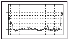 Resultados: Una vez registrados los datos y analizados off-line aplicando la técnica de media móvil, se obtiene la gráfica que muestra una representación del nivel de sedación (y) frente al tiempo (x), apreciándose disminución del nivel inicial, sedación profunda y fase de despertar rápida.