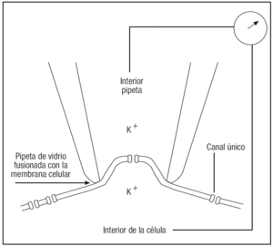 Figura 1. Registro de pequeñas áreas de membrana mediante la técnica de patch clamp.