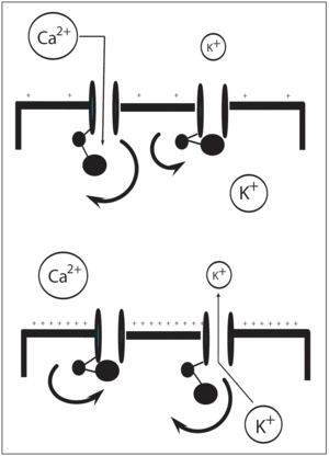 Al igual que las enzimas, los canales iónicos tienen sustratos específicos: canales de potasio, sodio, calcio y cloro. Estos iones atraviesan la membrana por difusión simple, pero los canales permiten selectivamente su paso. Durante los últimos cuatro años se han logrado impresionantes avances en la comprensión de la estructura y función de los canales de potasio. Utilizando canales iónicos purificados de bacterias los investigadores demostraron que los canales de potasio presentan un poro, «con forma de tienda india invertida», que sobresale a través de la membrana celular y que es altamente selectivo para el potasio. Dependiendo del tipo de canal de potasio (tabla 1) existe generalmente un mecanismo de «compuerta», es decir, un mecanismo que abre el poro del canal en respuesta a un ligando químico como el calcio, o en respuesta a un cambio de voltaje a través de la membrana celular. El equipo de investigación liderado por Roderick MacKinnon, investigador del Instituto Médico Howard Hughes, en la Universidad Rockefeller, publicó la forma en la que el «poro» del canal de potasio se abre para permitir que éste fluya a través de la membrana celular. Roderick MacKinnon es uno de los dos científicos que fueron galardonados con el Premio Nobel de Química en el 2003 por sus descubrimientos sobre los canales de las membranas celulares5.