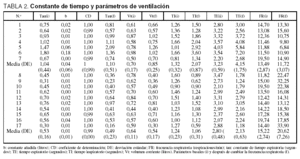 El coeficiente de determinación fue utilizado para estudiar la exactitud en el cálculo de los parámetros de la mecánica respiratoria y de la constante de tiempo. El análisis estadístico se realizó mediante el test no paramétrico de Kruskal-Wallis y el test de la U de Mann-Whitney. La asociación entre las variables fue analizada con el coeficiente de correlación de Spearman. Los resultados son expresados en forma de media (desviación estándar). Consideramos diferencias estadísticamente significativas cuando el valor de p ≤ 0,05.