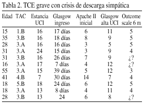 Objetivos: Analizar los hallazgos radiológicos iniciales entre los pacientes con TCE grave que presentan crisis de descarga simpática (CDS) durante las primeras dos semanas y los pacientes que no las presentan.