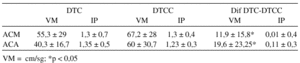 Los valores medios del ángulo de incidencia fueron de 29,7º (6-62) para la ACM derecha, 20,4º (4-32) para la ACM izquierda, 20,5º (2-43) para la ACA derecha y 23,5º (4-58) para la ACA izquierda.