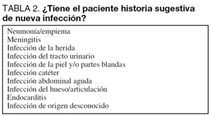 En los SUH es crucial la orientación sindrómica inicial para la identificación del foco (tabla 2) en los pacientes con sospecha de sepsis (tabla 3), la adecuada recogida de muestras microbiológicas y la elección de tratamiento antimicrobiano empírico. El conocimiento del perfil clínico del paciente y sus antecedentes (inmunosupresión, cirugía reciente, diálisis, etc.) resultarán de utilidad en la búsqueda del foco y la etiología de la sepsis.