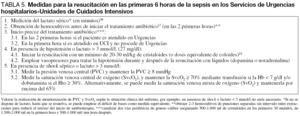 Aunque la mortalidad relativa de la sepsis ha disminuido el aumento de su incidencia, ha hecho que el número absoluto de muertes por sepsis se incremente, por lo que representa un importante problema sanitario en todo el mundo. Para concienciarnos de este problema y así adoptar medidas específicas, desarrollar pautas de actuación y facilitar su puesta en práctica nació la Surviving Sepsis Campaign o «Campaña para sobrevivir a la sepsis» (CSS) en el año 2002, que con la participación de la European Society of Intensive Care Medicine, el International Sepsis Forum, la Society of Critical Care Medicine y el American College of Emergency Physicians, se fijó como principal objetivo conseguir una reducción de la mortalidad de la sepsis grave en un 25% en 5 años (2005-2009), lo que para España supondría «salvar» más de 3.000 personas/año. Para ello se establecieron unas pautas de actuación clínica17 a desarrollar de manera conjunta en forma de «dos paquetes de actuación básicos». El paquete de «resucitación inicial» se debe completar en las primeras 6 horas desde la sospecha de sepsis grave en los SUH, lo que implica iniciar lo antes posible y en el propio SUH las medidas indicadas en el mismo para conseguir «los objetivos de la resucitación»18. Con la identificación del paciente se activaría en el SUH el «código de sepsis grave» (CSG) con el comienzo de la fluidoterapia, realización de analítica con lactato, toma de hemocultivos, administración de la primera dosis de antibiótico adecuado y aviso a UCI.