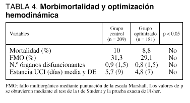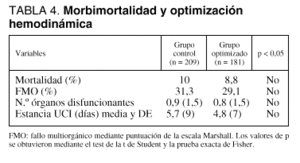 En la tabla 4 se observa que, a pesar de la optimización alcanzada en el GO, no observamos en él una disminución en la morbimortalidad ni en la estancia media, lo que rechaza la hipótesis de nuestro estudio.