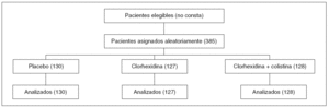 Antecedentes: entre el 80% y 95% de las infecciones que presentan los pacientes críticos están producidas por microorganismos que colonizan la orofaringe y el intestino de los pacientes antes de causar la infección. La descontaminación digestiva selectiva (DDS) es una estrategia para la profilaxis de la infección cuyo fin es erradicar y prevenir la colonización de la orofaringe, estómago e intestino por microorganismos potencialmente patógenos, mediante la administración de antimicrobianos tópicos no absorbibles en la orofaringe y el tubo digestivo junto con un antibiótico de amplio espectro por vía parenteral los primeros 4 días. Un metaanálisis que analizó 36 ensayos clínicos con asignación aleatoria y 6.922 pacientes demostró que la DDS se asocia con una reducción relativa de la mortalidad del 22% (NNT = 21) y de la infección respiratoria del 65% (NNT = 5)1. Sin embargo, su uso no se ha generalizado principalmente debido al temor al desarrollo de resistencia de los microorganismos a los antimicrobianos utilizados. Por ello, una alternativa atractiva para la descontaminación orofaríngea es el empleo de clorhexidina, un antiséptico con amplia actividad frente a microorganismos grampositivos, incluidos algunos resistentes como Staphylococcus aureus resistente a meticilina y enterococo resistente a vancomicina, pero con una actividad no tan óptima frente a gramnegativos.