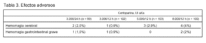 Conclusiones de los autores: el uso de certoparina hasta una dosis de 8.000 U antifactor X activado (aXa) no mejora el estado funcional de los pacientes con ACVA isquémico a los tres meses.