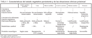 Hay algunas alteraciones del nivel de conciencia que hay que diferenciar del estado vegetativo: el coma, la muerte encefálica, el síndrome de enclaustramiento (locked-in syndrome), el mutismo acinético y las fases terminales de una demencia. En la tabla 1, pueden verse los datos diferenciales más relevantes.
