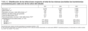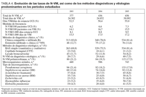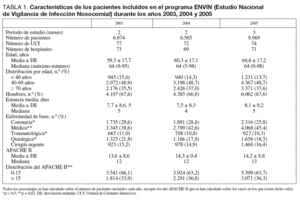 En este trabajo se presentan las tasas, etiología y marcadores de resistencia obtenidos tras la aplicación del programa ENVIN en su versión completa en los años 2003, 2004 y 2005.