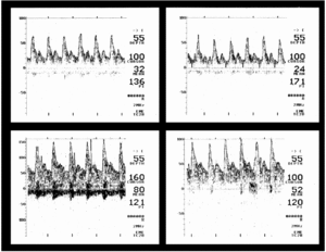 La medición de la velocidad de los flujos arteriales cerebrales se realizó con el modelo TC 2-64 (EME) Transcranial Doppler.